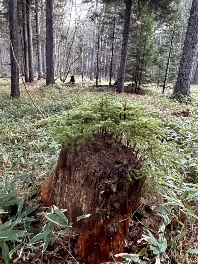 新しい命が芽吹く「倒木更新」が起こります。