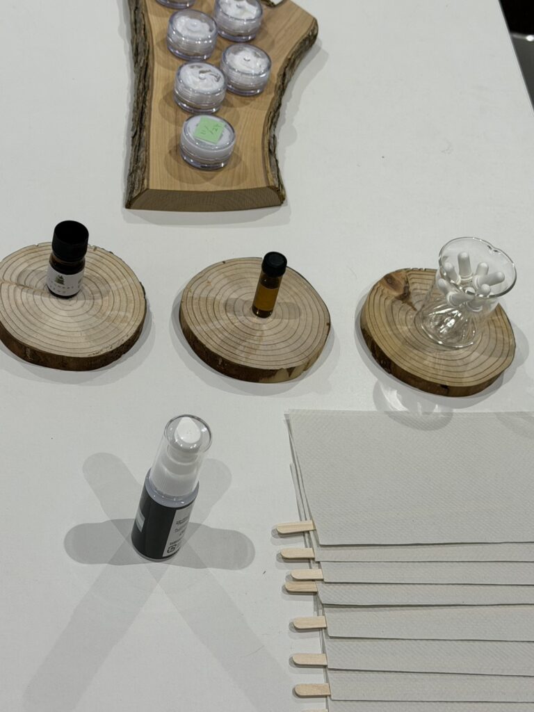 続きまして、井出氏のレクチャーで学びを深め、更に、エゾアカマツの精油を使ったハンドクリームを調香。殺菌作用やストレス軽減にも効果があるとされる香りを、自らの手で形にしていきました。