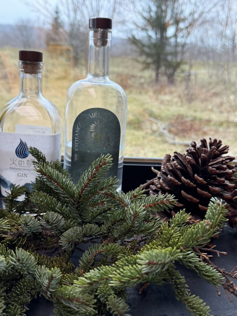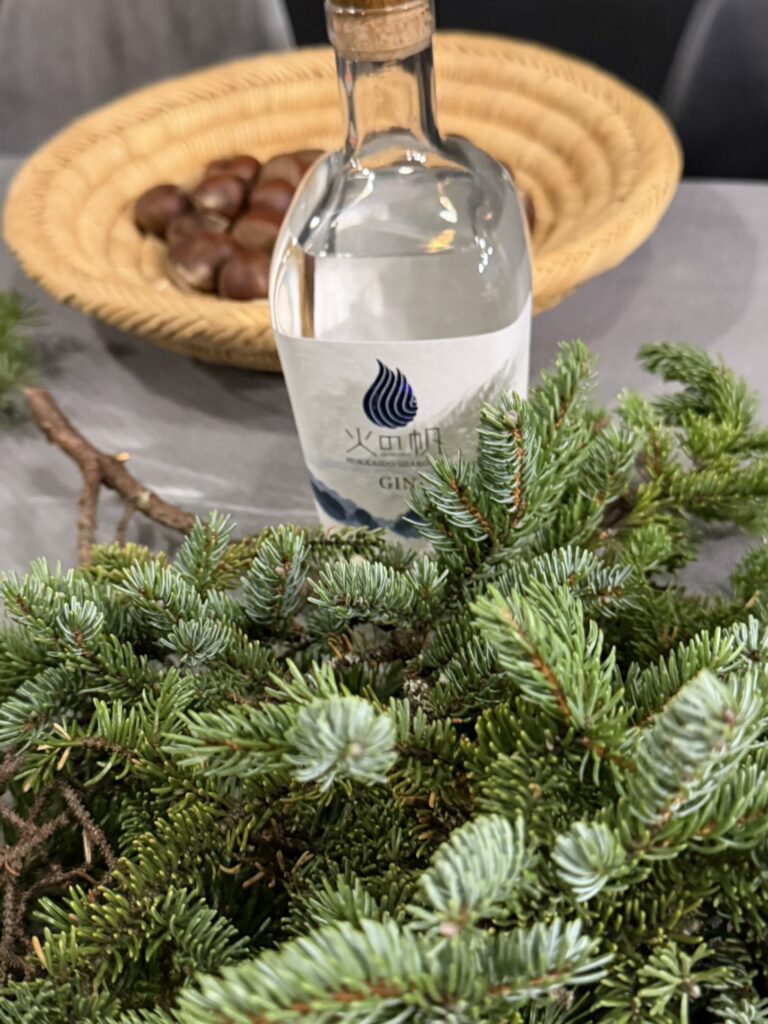 ディナーのあとは、香り高いエゾアカマツのジンを少量いただき、