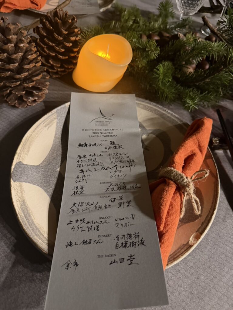 朝の澄んだ冷気がそのまま夜まで透明に残る、道東の晩秋。凛とした空気の中で始まった食文化の会は、食材そのものの声を聴き、美しさと力をあますことなく引き出す時間となりました。