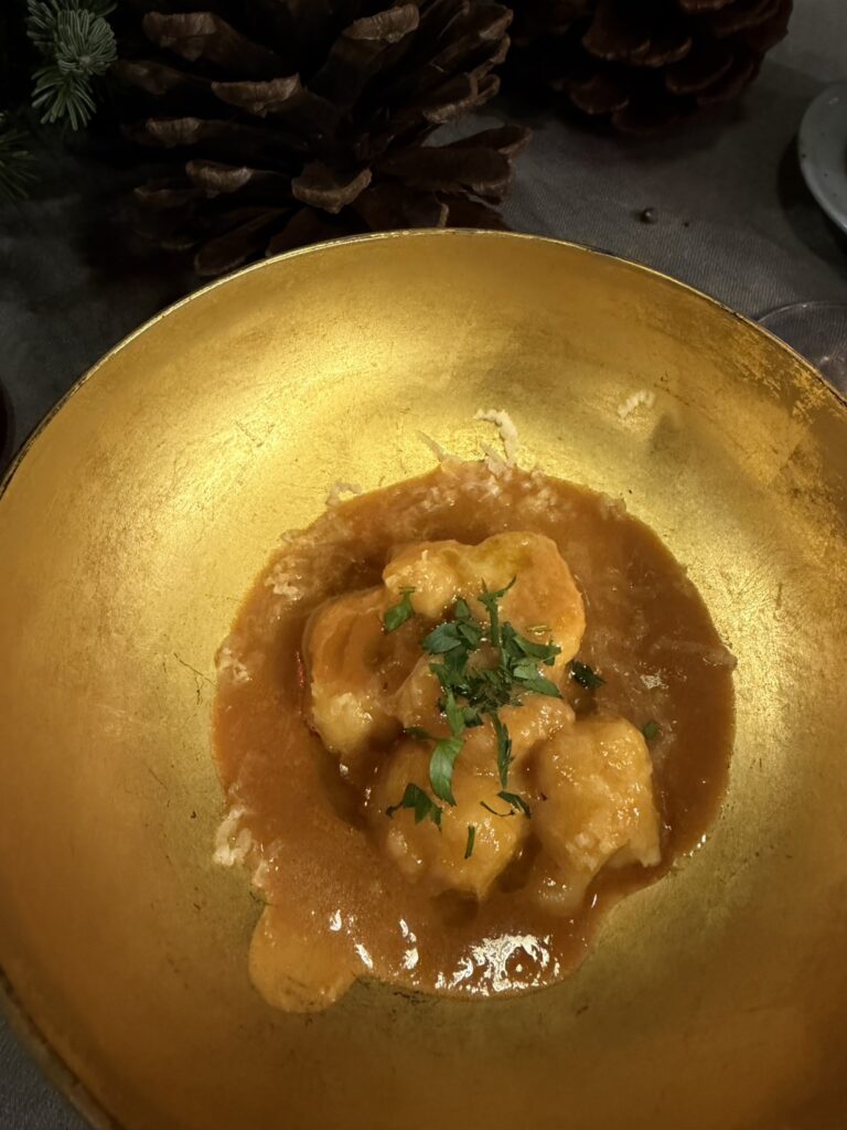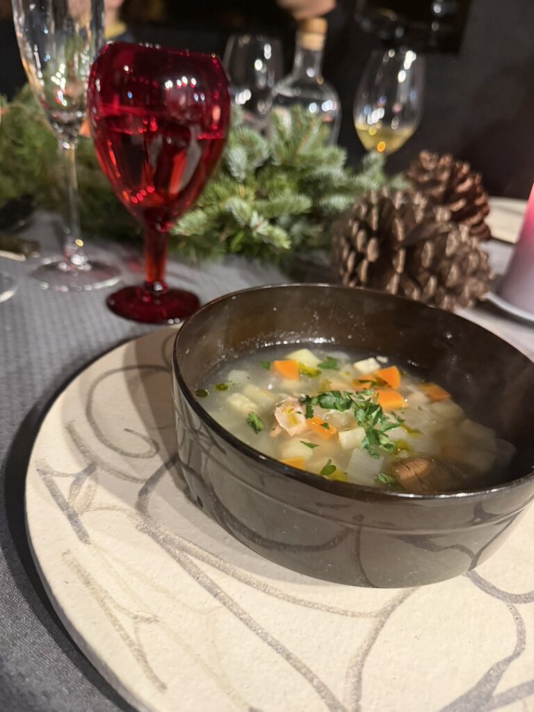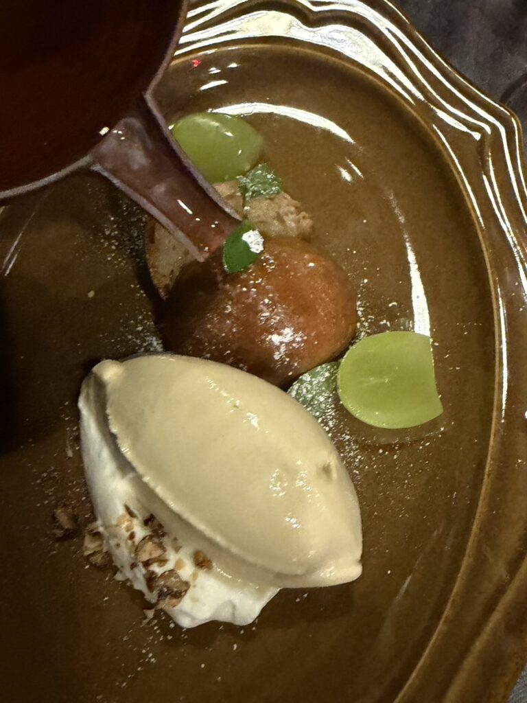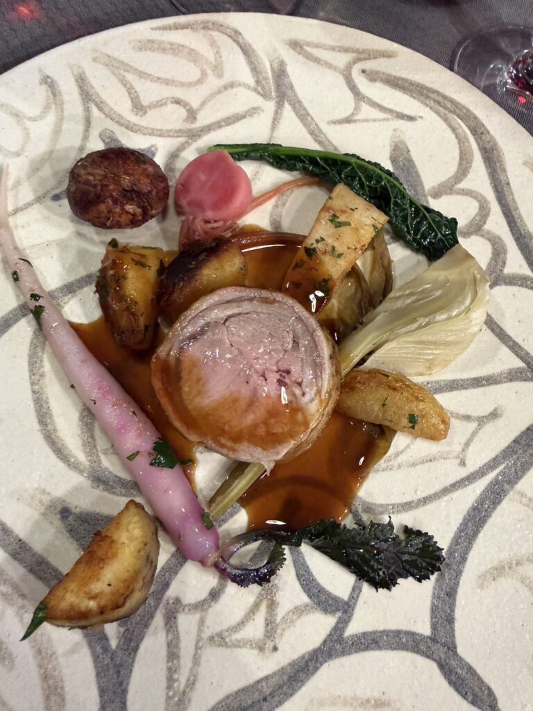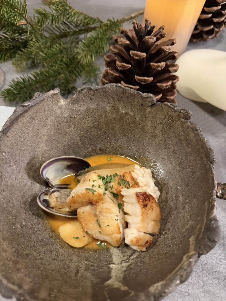 → これはシェフのトロワグロでの姿を思い起こす絶妙な火入れの極上の一皿。海の温度、潮の流れ、冬を知らせる魚たち。それぞれの旨味が重なり、道東の海そのものを食べているような深い味わいでした。